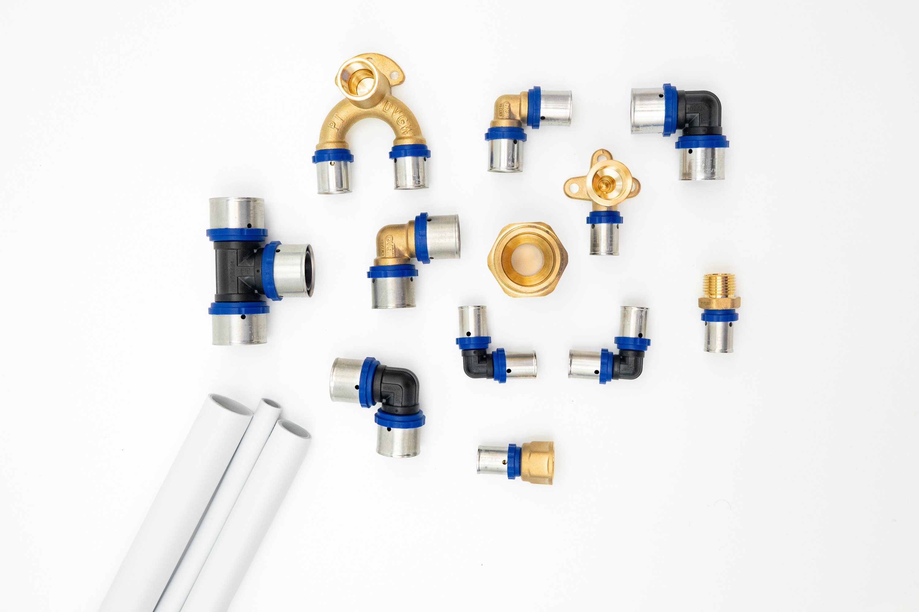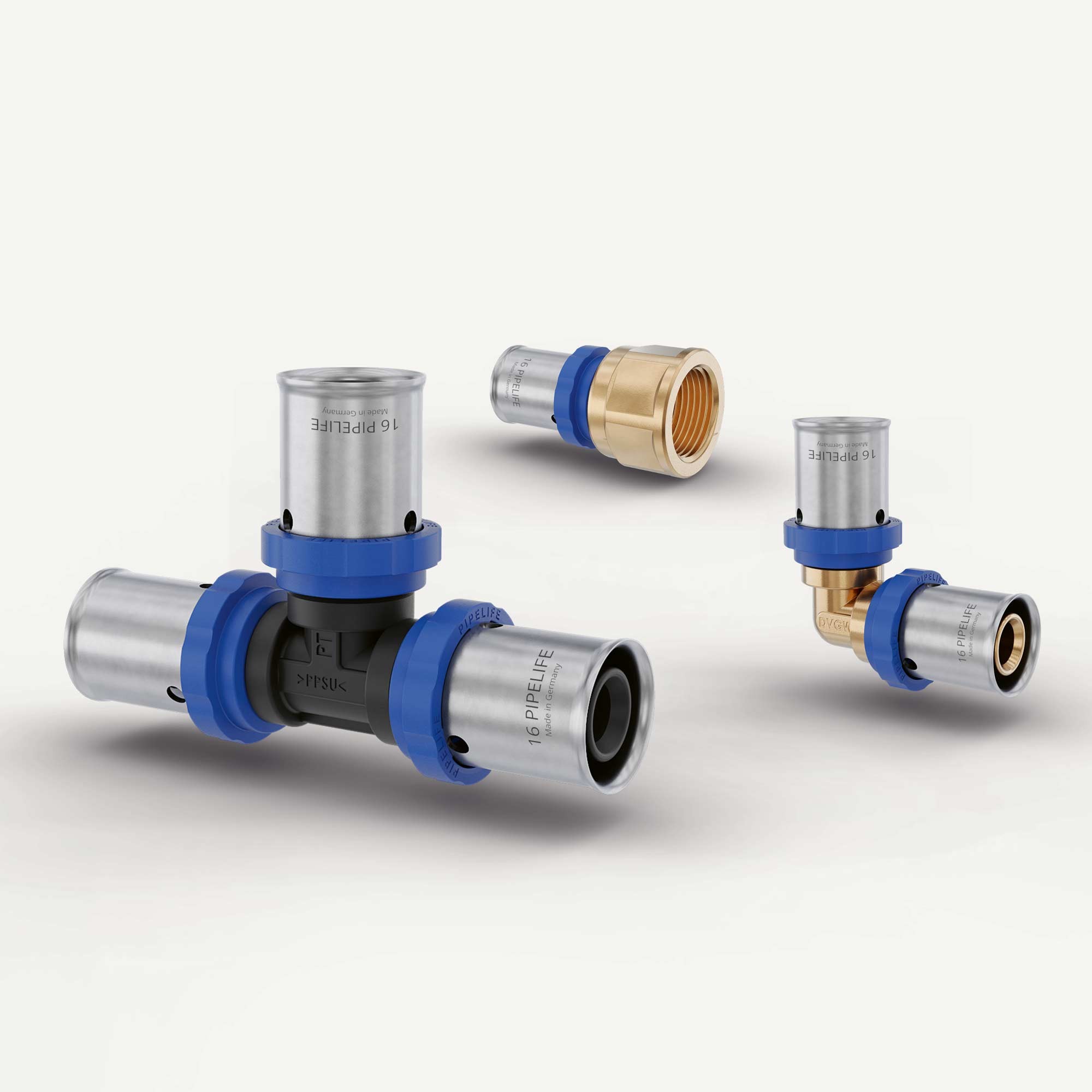 | Verfügbare Typen | Winkel, T-Stücke, Kupplung, Reduktion, Übergang mit Außengewinde, Übergang & Winkel mit Innengewinde, Übergang auf C-Stahl, Presskugelhahn, Pressverschraubung, Übergangsverschraubung, Presshülsenersatzteil, Armaturenanschlüsse lang/kurz/doppelt |